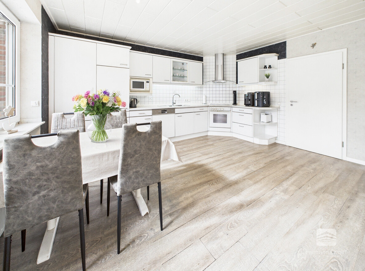 Auch die große Wohnküche wird ihrem Namen mehr als gerecht – sie bildet das Herzstück des Familienlebens, ein Ort für gute Gespräche, gemeinsames Kochen und geselliges Beisammensein.