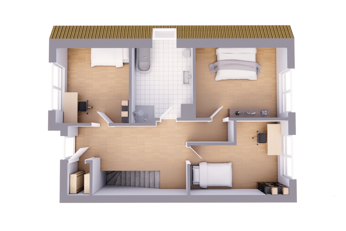 Drei gemütliche Schlafzimmer schaffen Rückzugsorte für die ganze Familie.