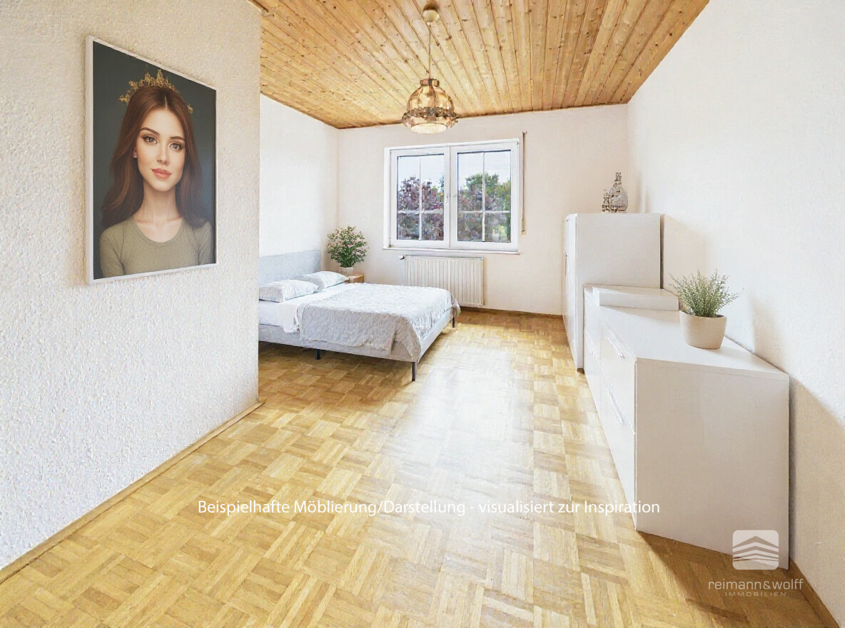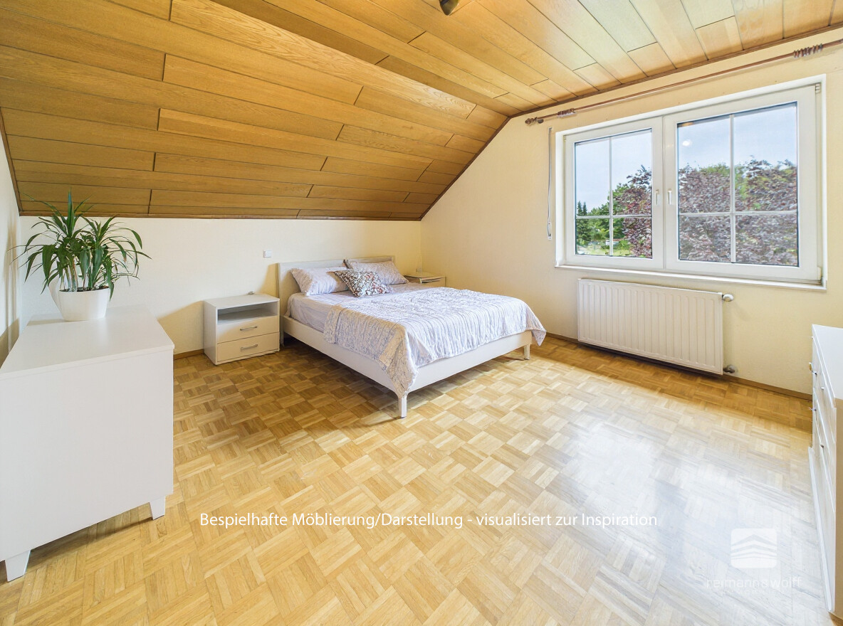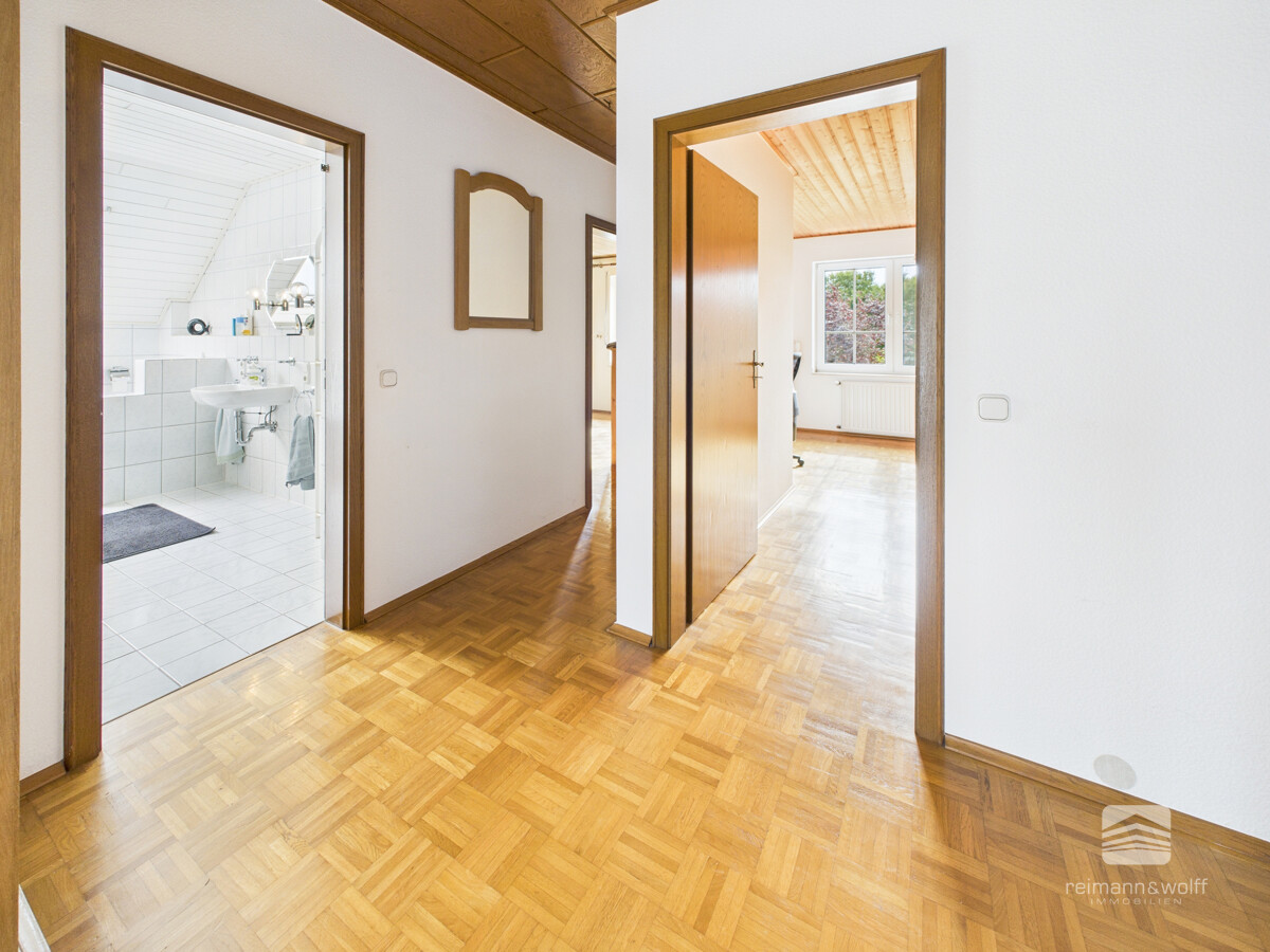 Im Obergeschoss sorgt edler Parkettboden, auch in den Schlafräumen, für eine stilvolle und wohnliche Atmosphäre.