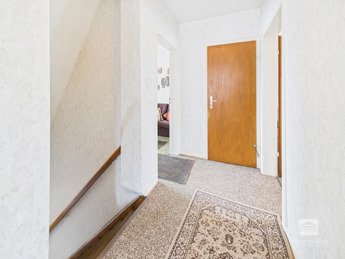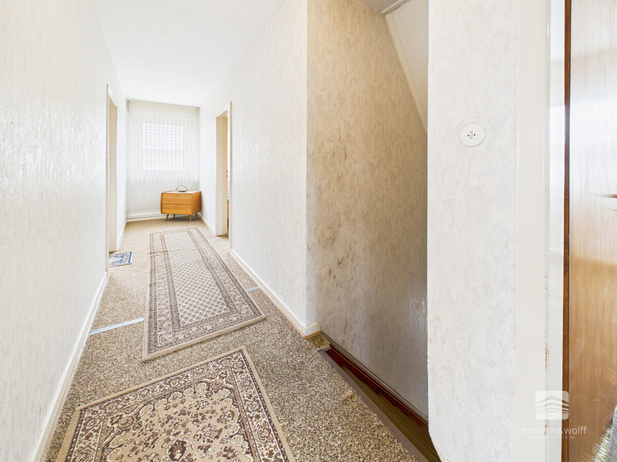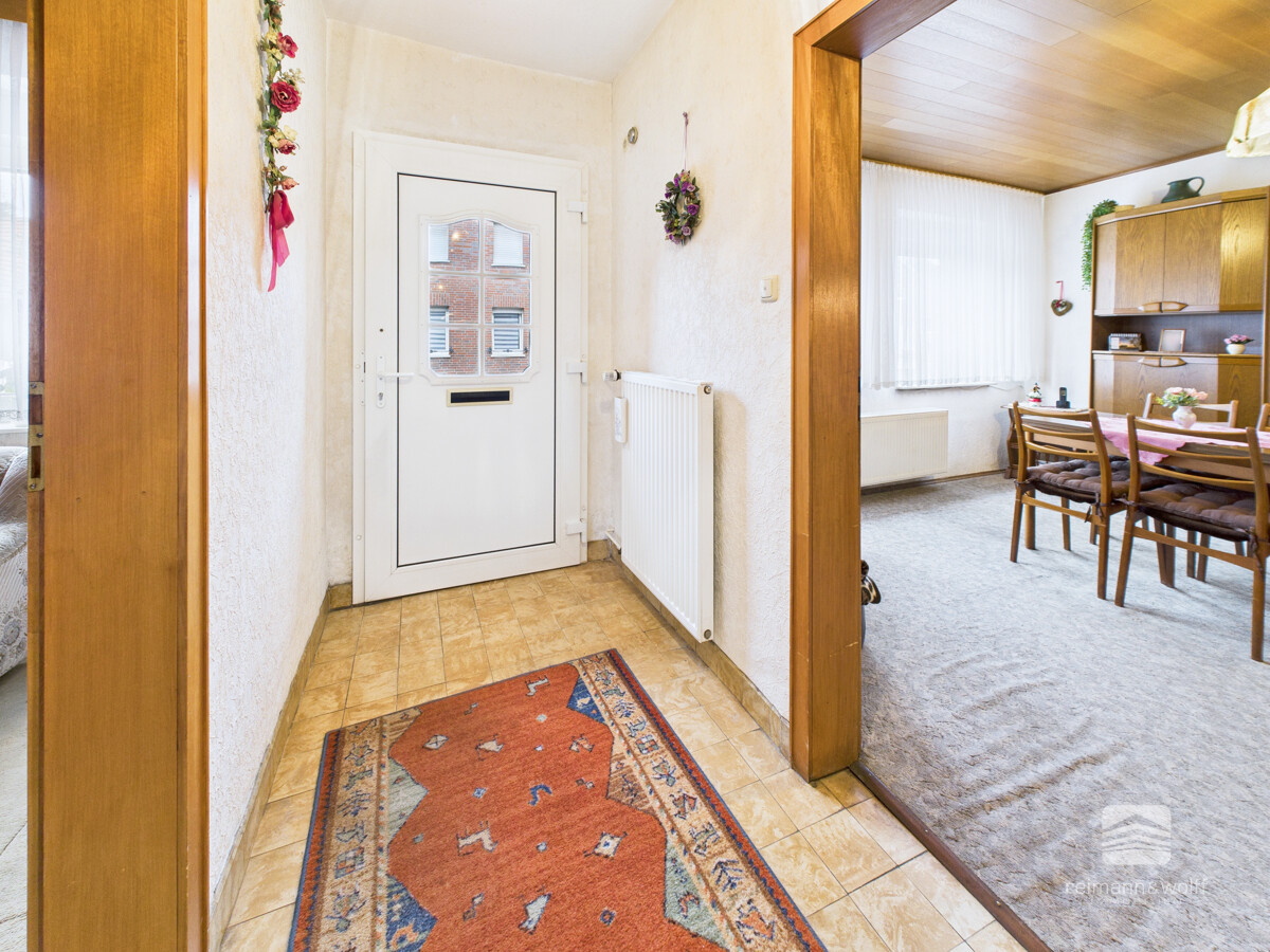 Im Inneren entfaltet sich eine wohnliche Atmosphäre mit traditionellen Dielenböden, gemütlichem Teppich und pflegeleichtem PVC – eine solide Basis, um Ihren persönlichen Wohnstil zu verwirklichen.