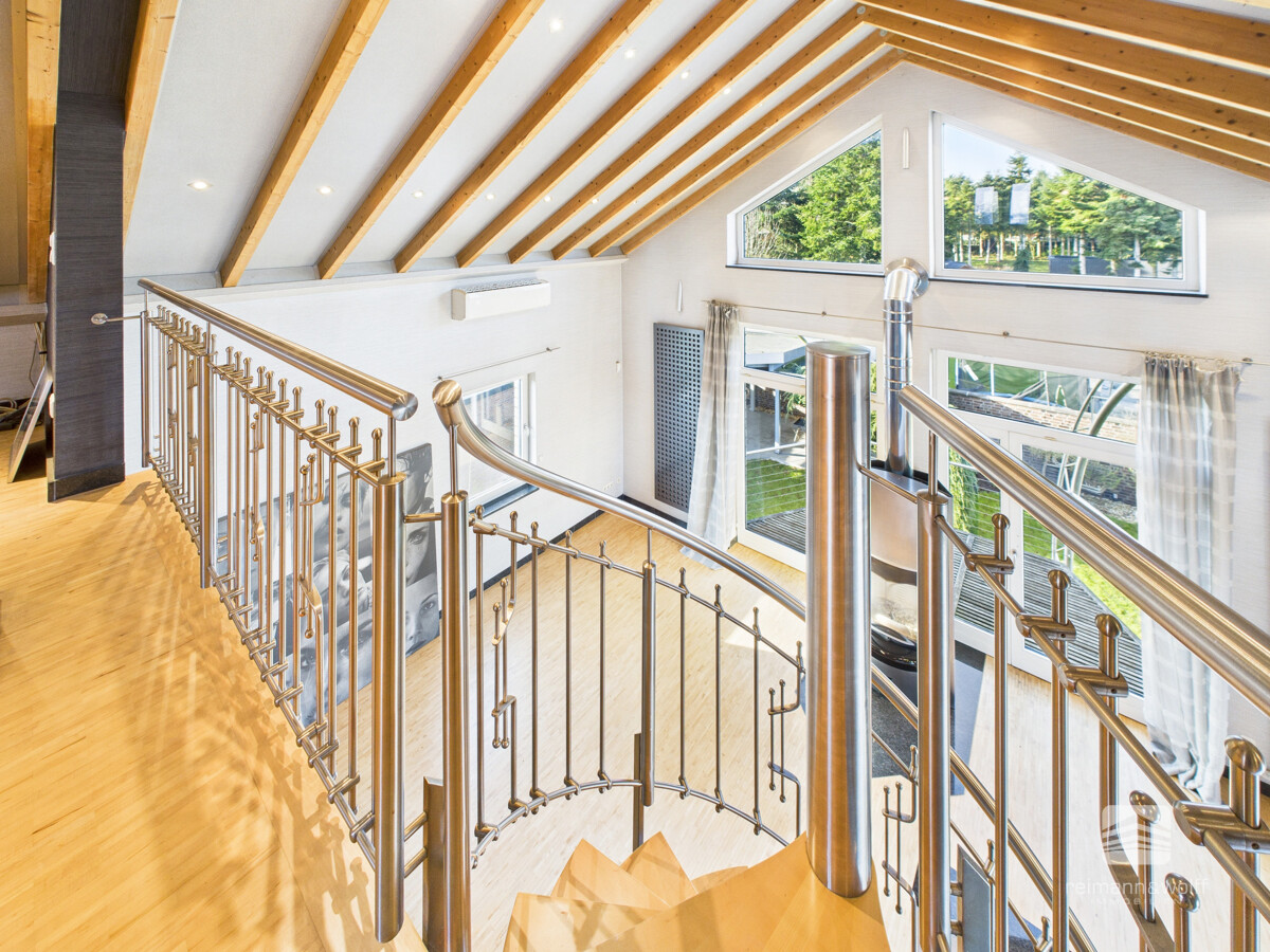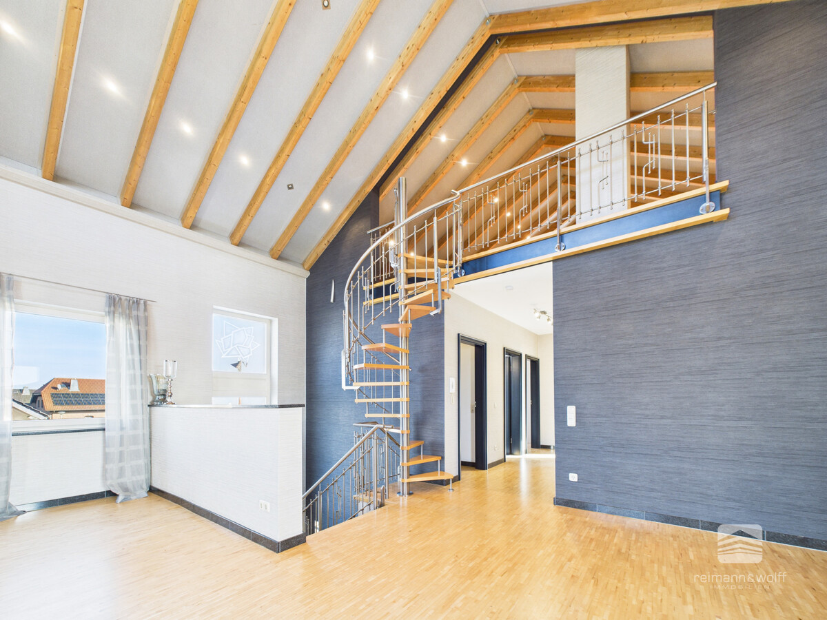 Ein besonderes Highlight ist die ausgebaute Galerieebene. Dieser besondere architektonische Akzent mit eindrucksvoller Balkenkonstruktion und großzügiger Raumtiefe eröffnet Ihnen vielfältige Gestaltungsoptionen als Masterbereich, Atelier oder persönlicher Rückzugsort.