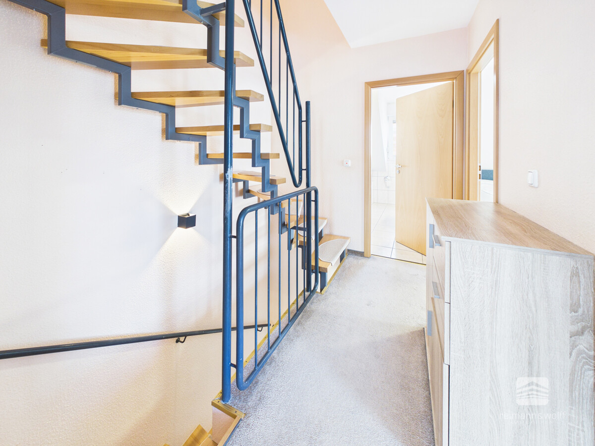 Im Obergeschoss erwarten Sie drei behagliche Schlafzimmer, die Ihrer Familie vielseitige Rückzugsorte bieten.