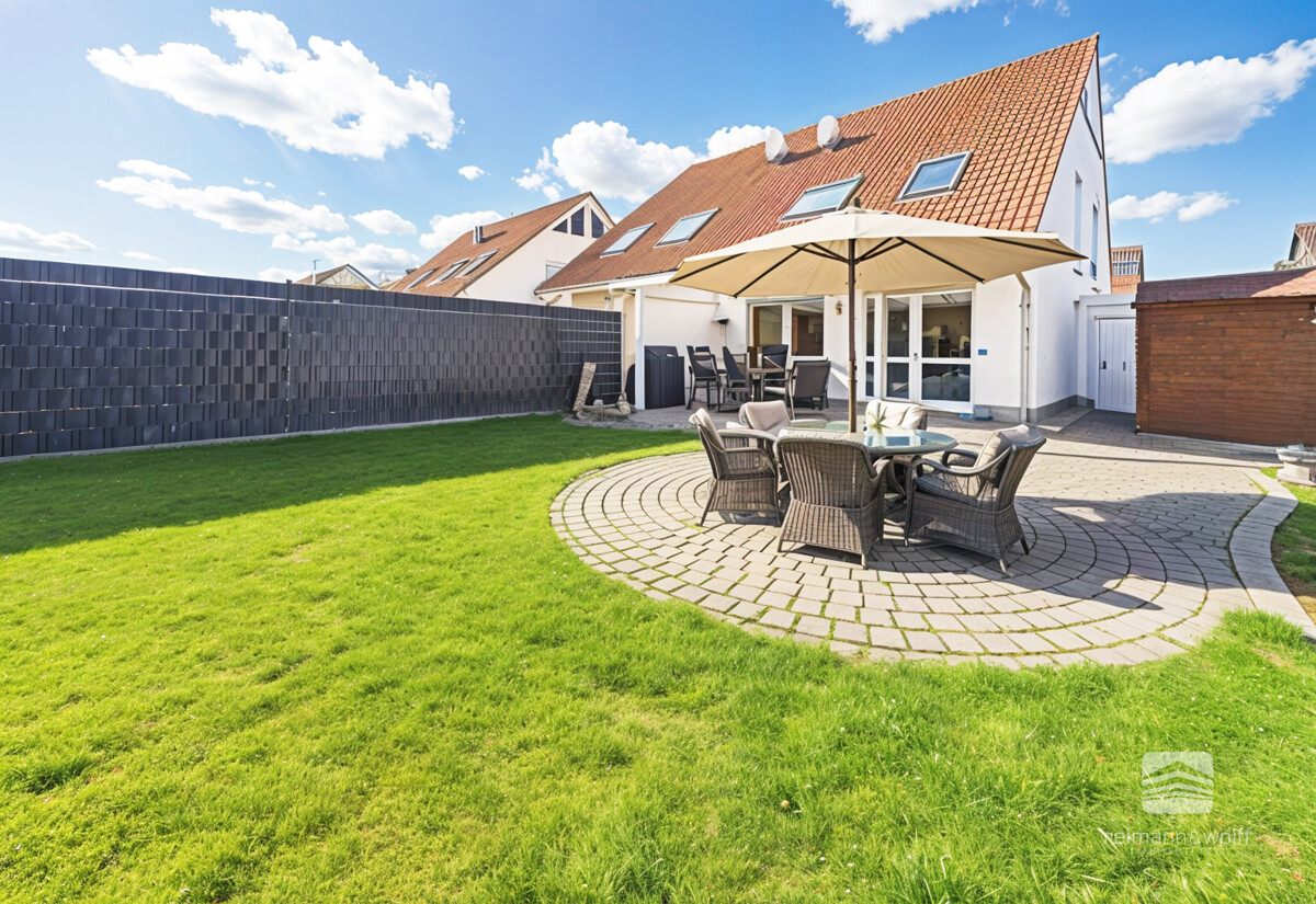 Während Ihre Kinder den Garten entdecken, genießen Sie auf der überdachten Terrasse erholsame Momente der Ruhe. Hier lassen Sie den Tag bei einem guten Buch, einem Glas Wein oder in geselliger Runde mit Familie und Freunden genussvoll ausklingen.