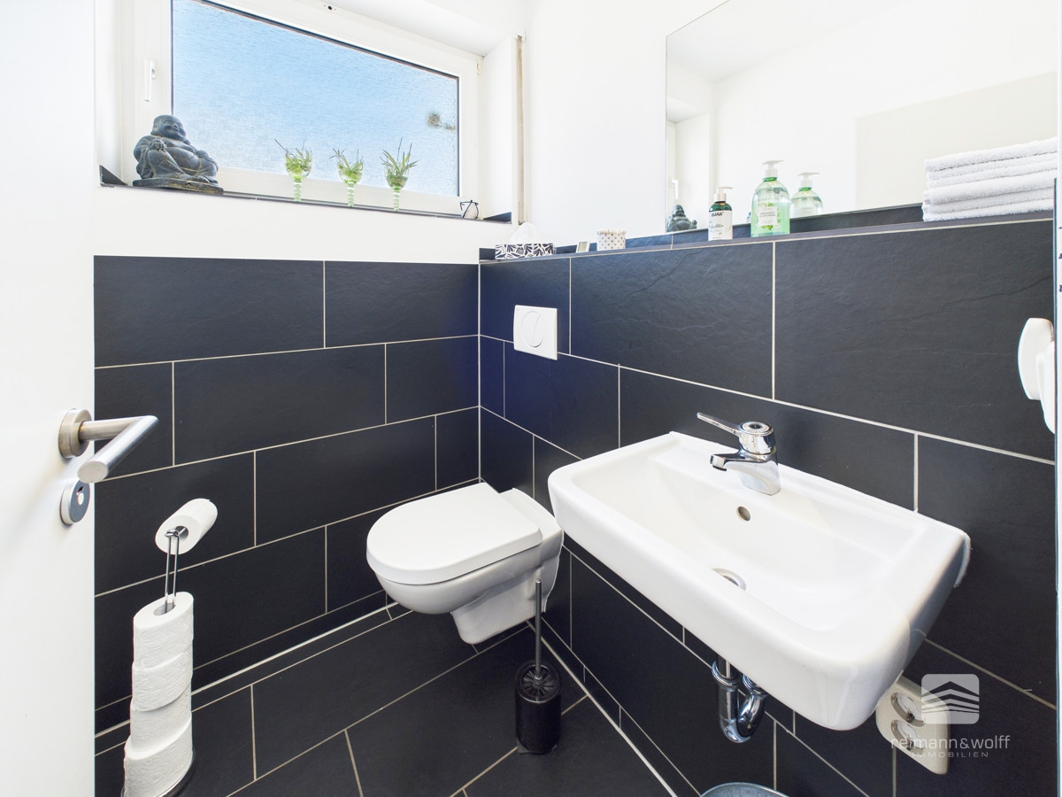 Ein besonderes Plus sind die modernisierten Sanitärräume. Das stilvoll erneuerte Badezimmer empfängt Sie mit viel Tageslicht, Badewanne und Dusche – ein Ort der Erholung und Klarheit. Auch das Gäste-WC wurde zeitgemäß gestaltet und präsentiert sich ansprechend und frisch.