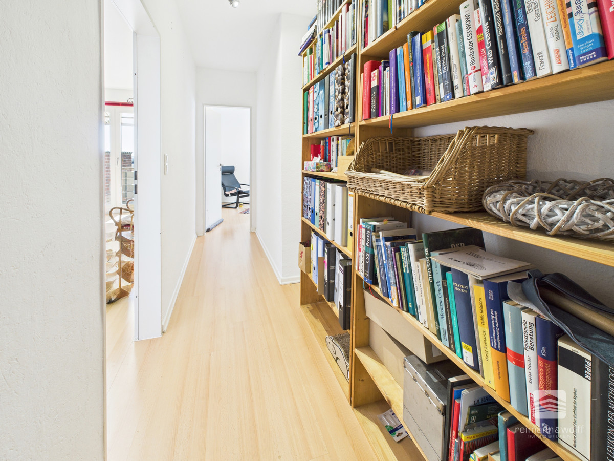 Klar gestaltete Wände in Weiß lassen viel Licht wirken, während gepflegte Laminatböden in warmer Holzoptik eine wohnliche Atmosphäre entfalten.