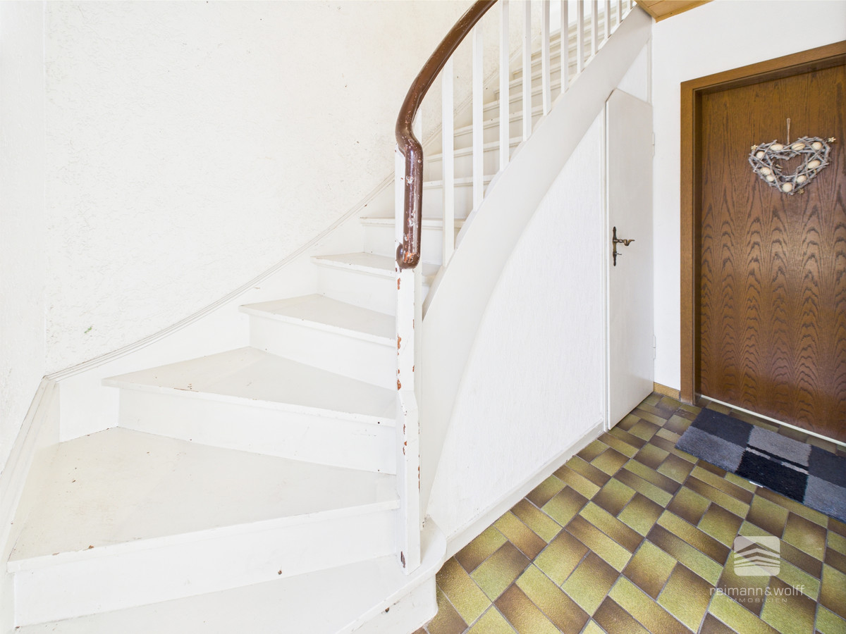 Die vorhandene Elektroinstallation entspricht noch dem Stand früherer Jahre und sollte an die heutigen Anforderungen angepasst werden – eine Gelegenheit, dem Haus Ihre persönliche Handschrift zu verleihen. Kunststofffenster mit Isolierverglasung und Rollläden, helle Innentüren sowie der praktische Vollkeller ergänzen das Gesamtbild ebenso wie die vorhandene Garage, die Platz für Auto, Fahrräder oder Hobby bietet.