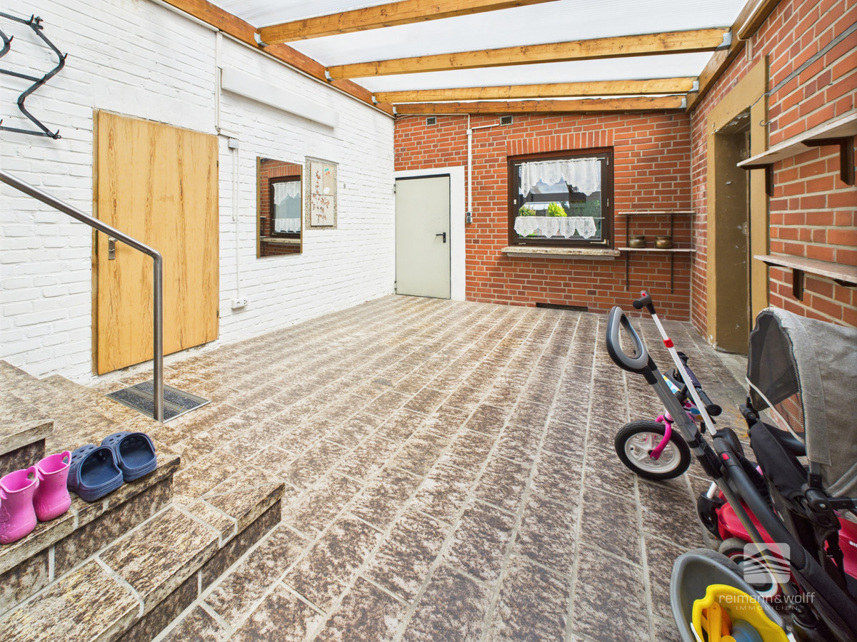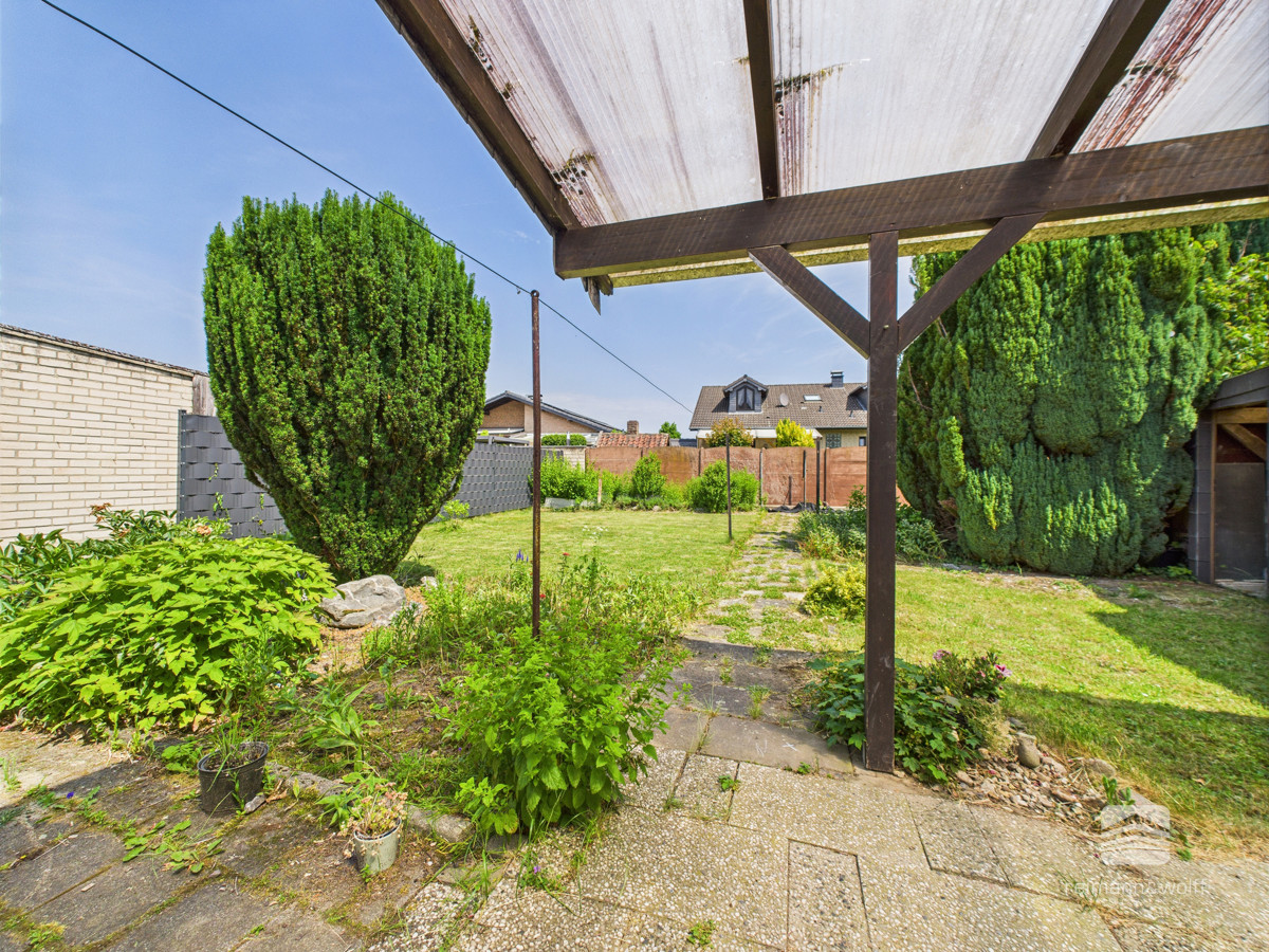 Der gepflegte Garten überzeugt mit einer großzügigen Rasenfläche und einer überdachten Terrasse, die zum Entspannen im Freien einlädt. Zusätzlich genießen Sie im geschützten Hofbereich wetterunabhängige Stunden im Freien.