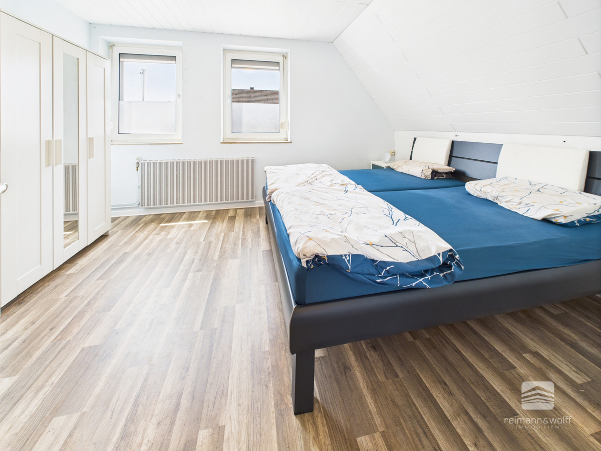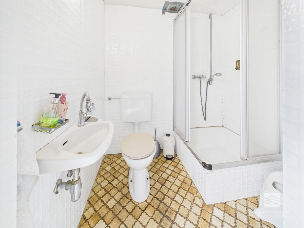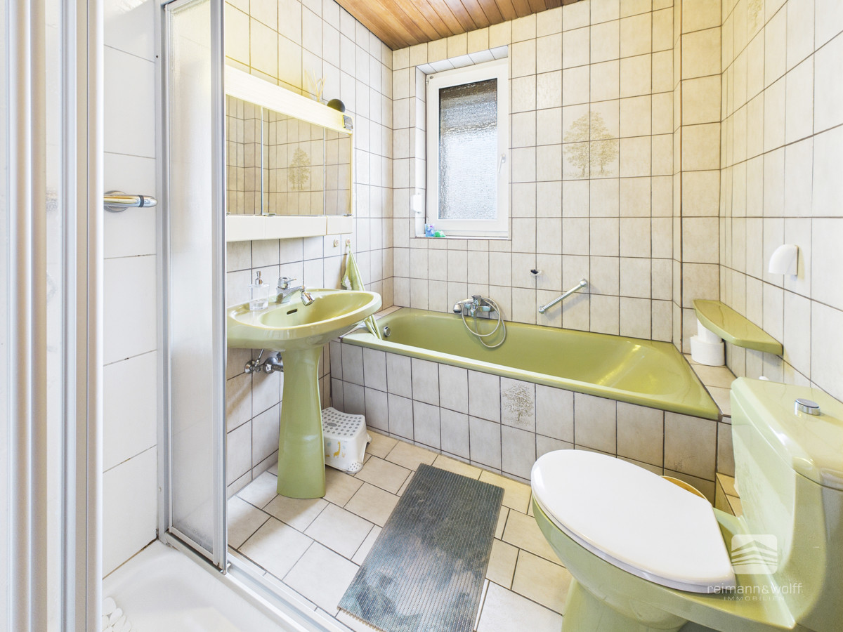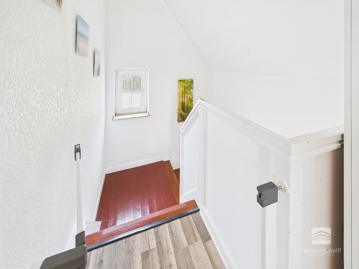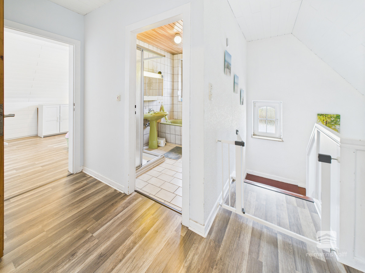 Im Obergeschoss erwarten Sie drei weitere Schlafräume sowie ein Tageslichtbad, das sich in solidem Zustand präsentiert und individuelle Gestaltungsmöglichkeiten für eine moderne Neuausrichtung bietet.