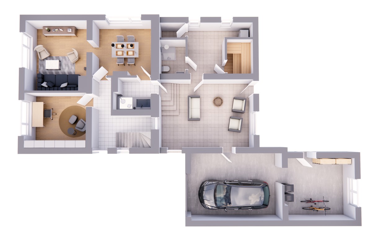 Ein weiteres Highlight ist das angrenzende Nebengebäude mit eigener Sauna, Dusche und WC – ideal für Wellness zuhause oder als Rückzugsort nach einem aktiven Tag.