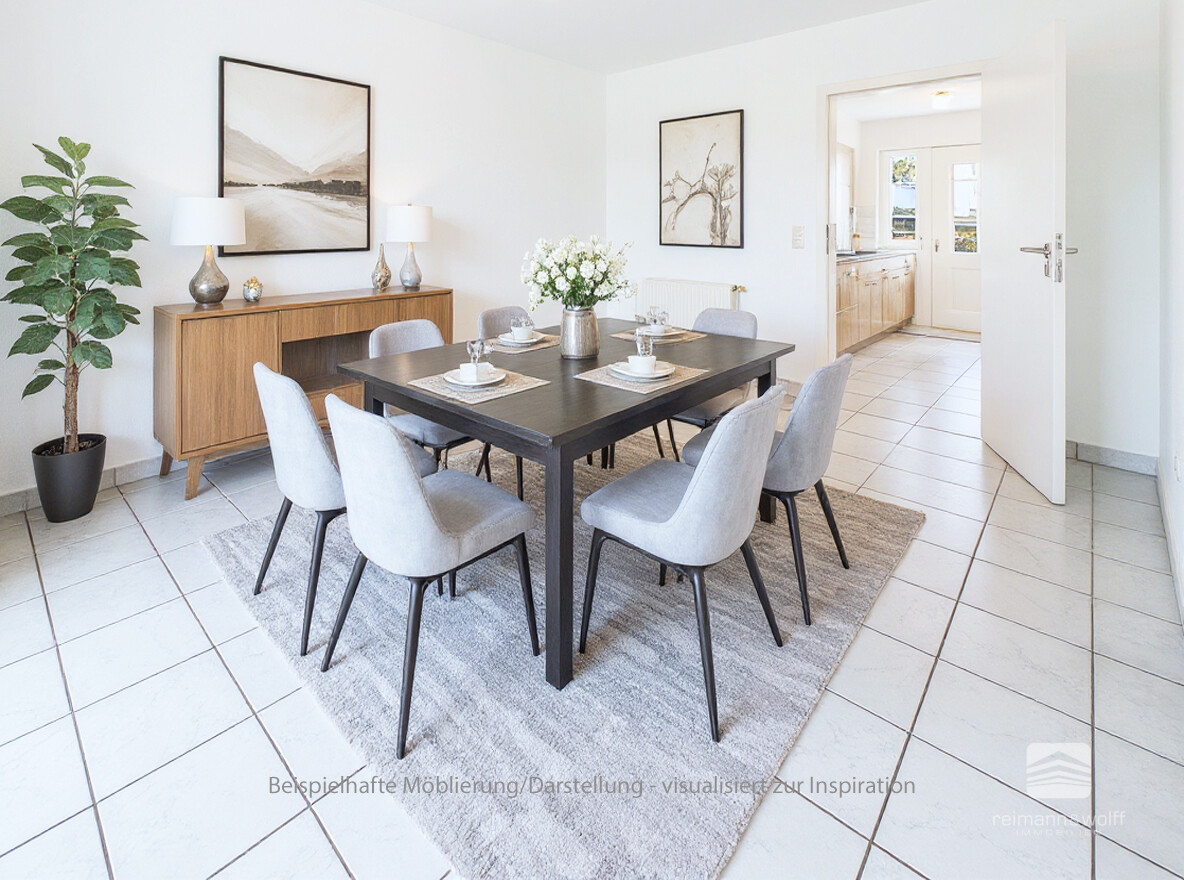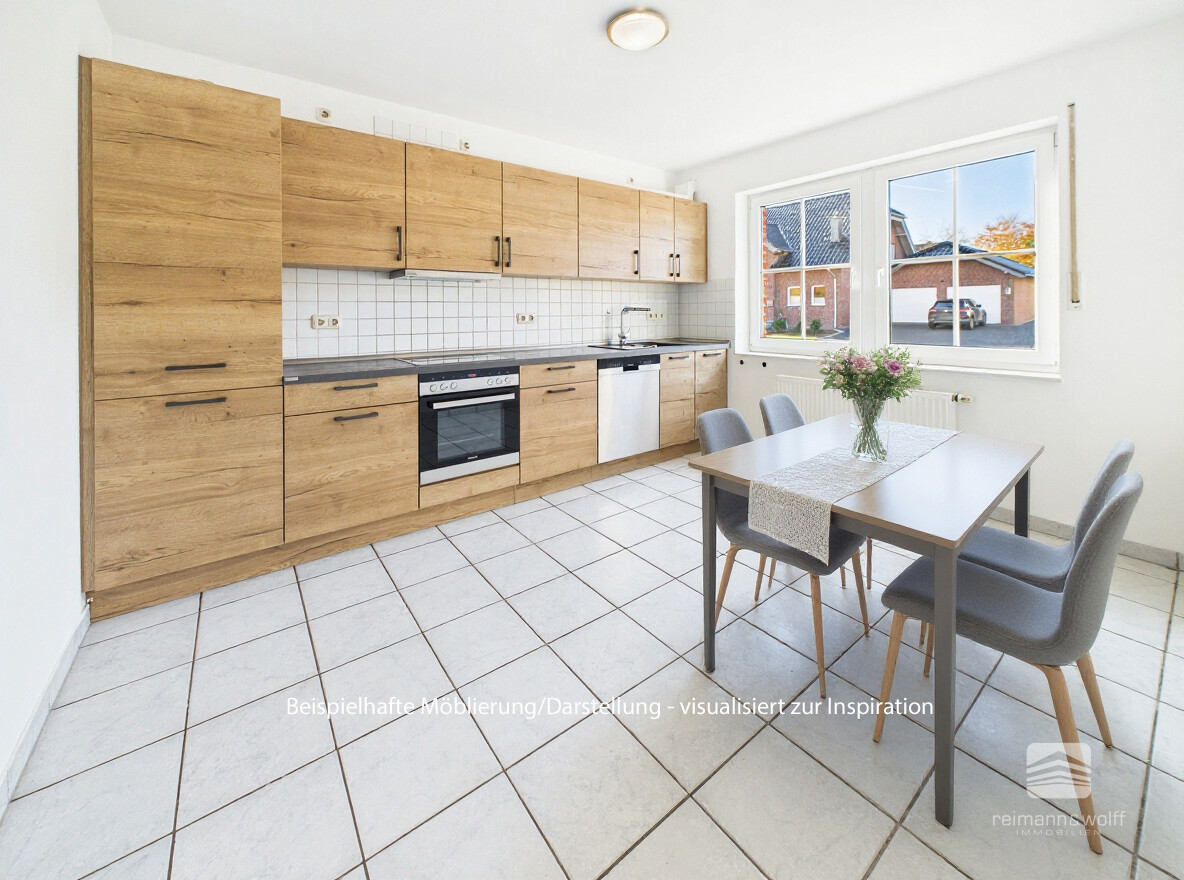 Die geräumige Wohnküche erlaubt eine Möblierung mit Tisch und Stühlen – perfekt, um hier in geselliger Runde zu verweilen oder gemütliche Stunden mit der Familie zu verbringen.