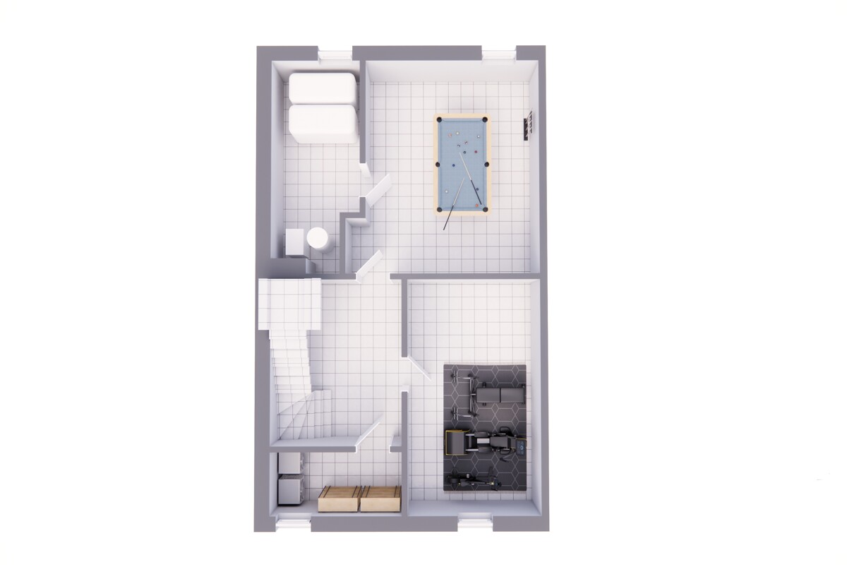 Der Vollkeller bietet reichlich Platz für Hobbys, Stauraum und einen praktisch gestalteten Hauswirtschaftsraum mit Podest für Waschmaschine und Trockner.