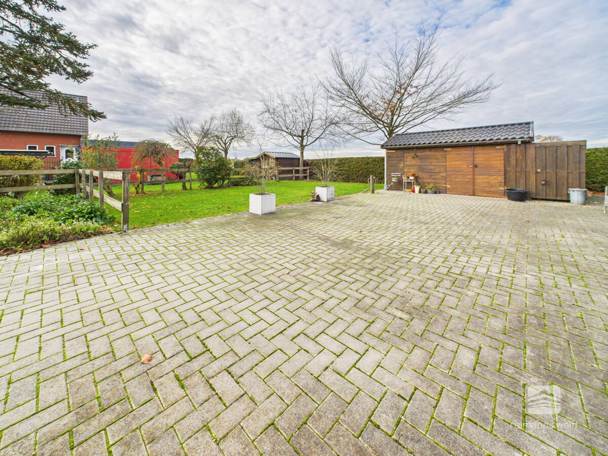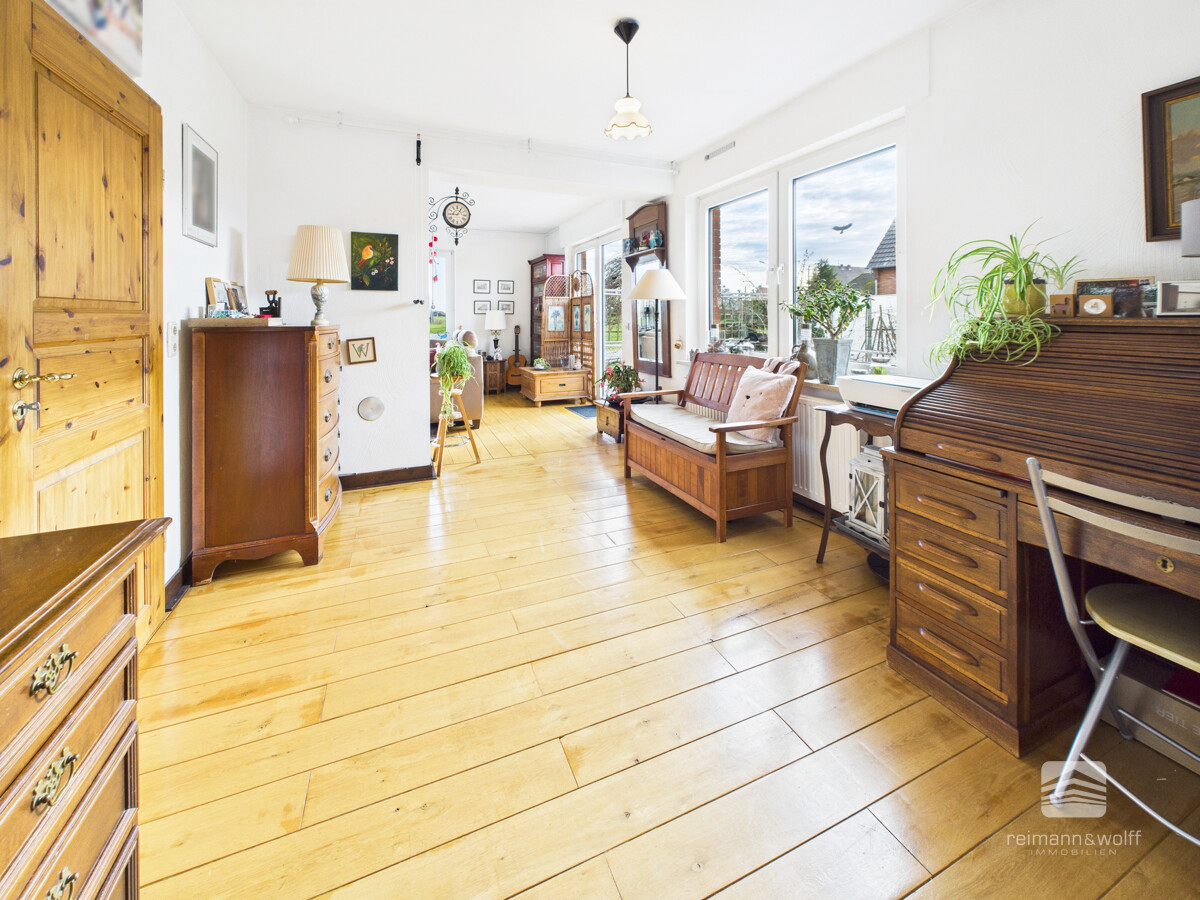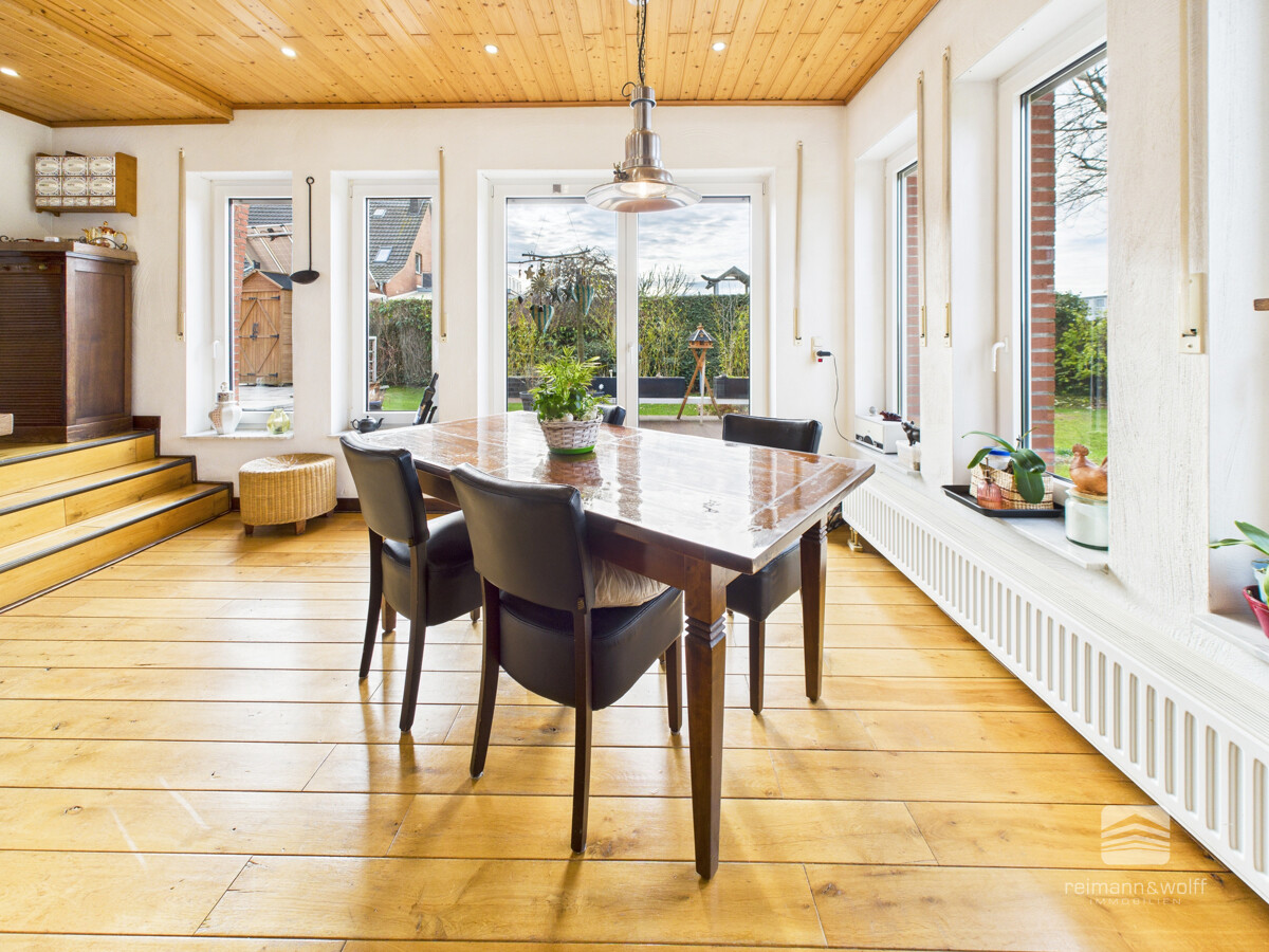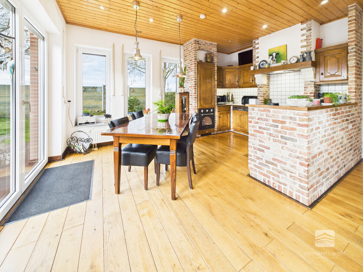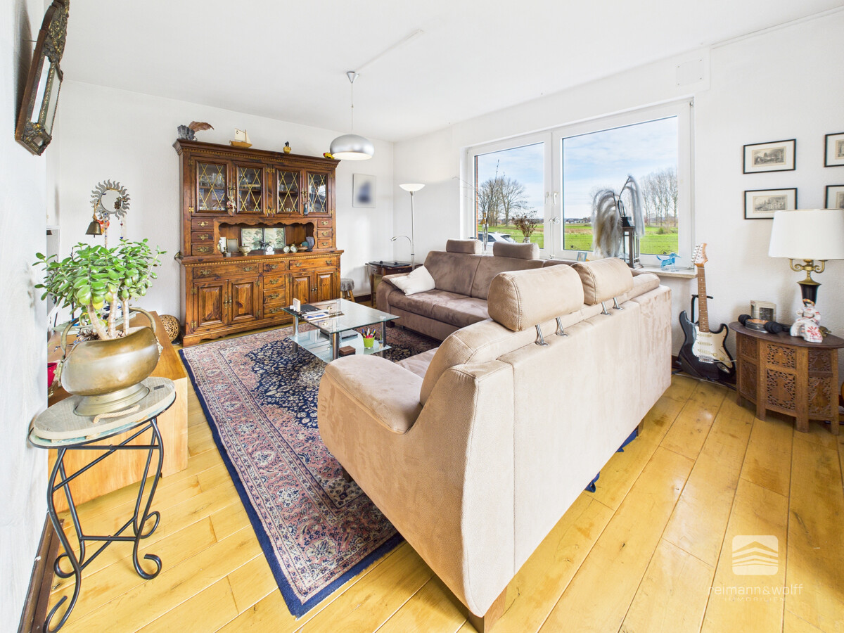 Sanft umarmt von weitläufigen Feldern und stillen Wiesen entfaltet dieses freistehende Einfamilienhaus mit Anbau aus dem Jahr 2000 einen Charme, der bereits beim ersten Blick ins Herz trifft.
