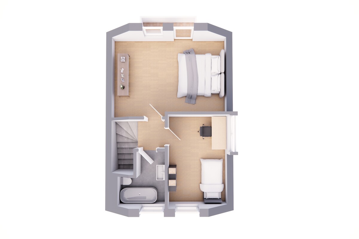 Im darüberliegenden Schlaftrakt entfalten zwei Schlafzimmer ihren einladenden Charakter.