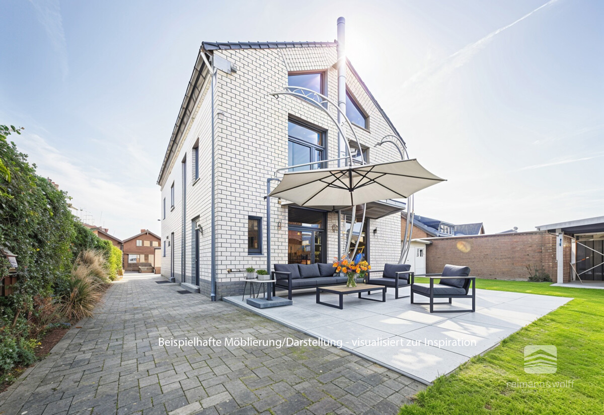 Dieses freistehende Einfamilienhaus mit separater Einliegerwohnung empfängt Sie mit einer modernen Architektur, die Großzügigkeit und Wohnlichkeit auf stilvolle Weise vereint.