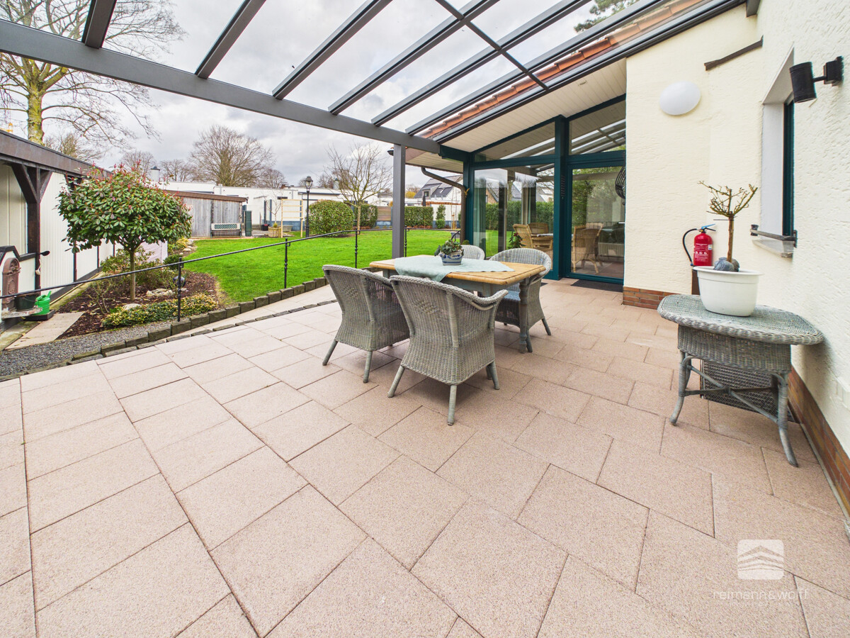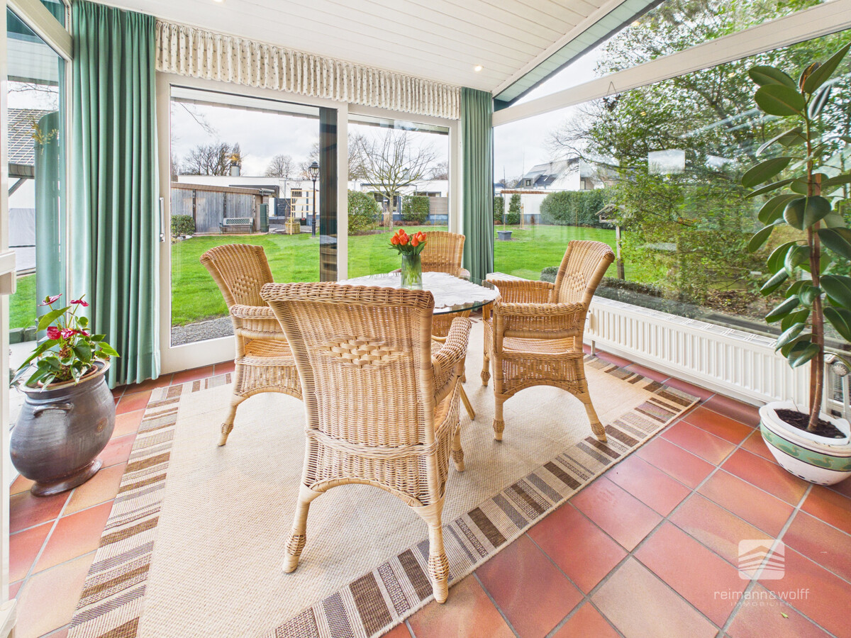 Im Wintergarten eröffnet sich Ihnen ein Blick ins unmittelbar angrenzende, sattgrüne Gartenparadies – ein Panorama, das zu jeder Tageszeit Ruhe und Inspiration schenkt.