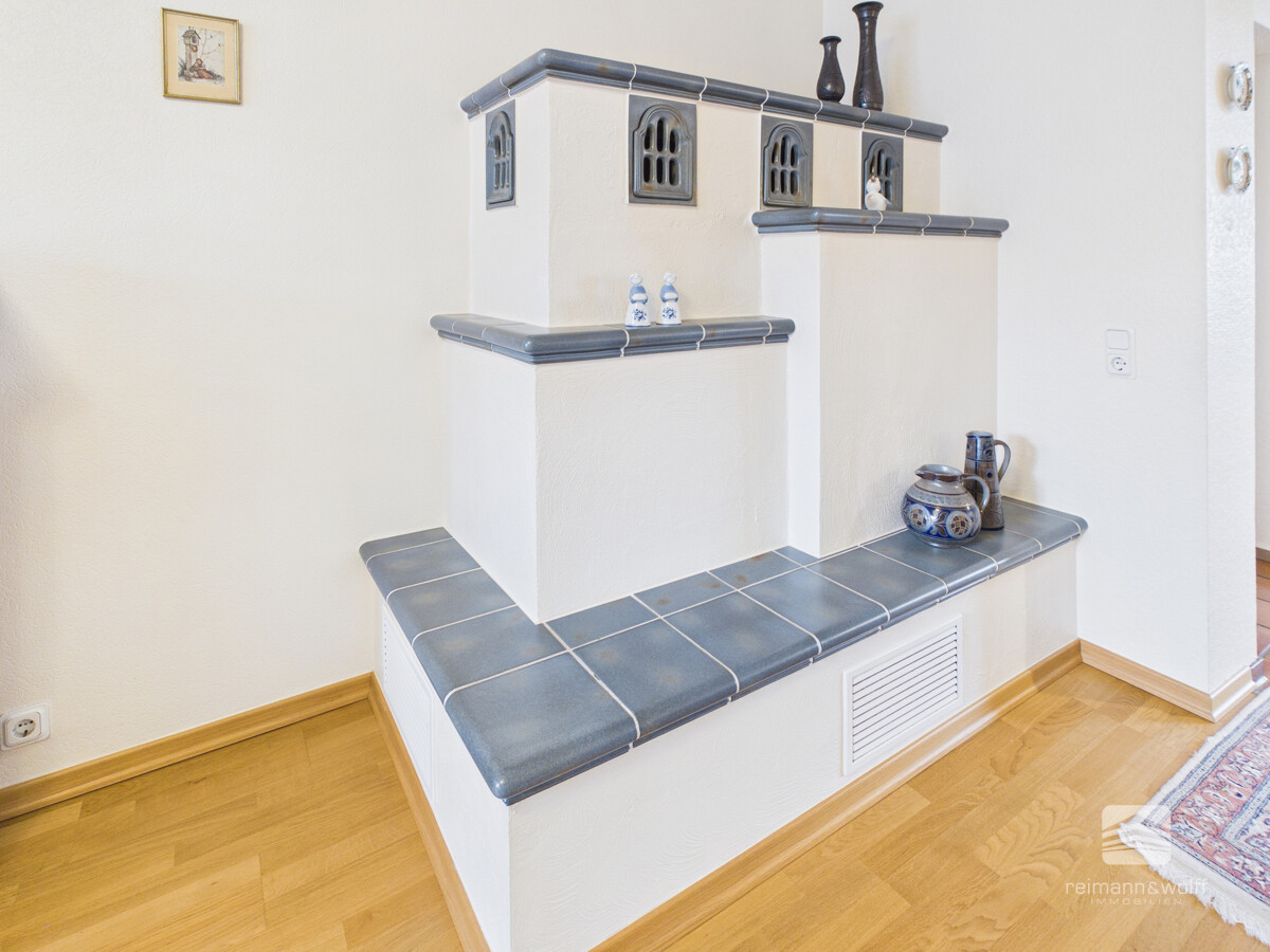 Im Inneren erwartet Sie eine behagliche Atmosphäre, geprägt von einem stilvollen Kachelofen, der in der kühleren Jahreszeit für wohltuende Wärme sorgt.