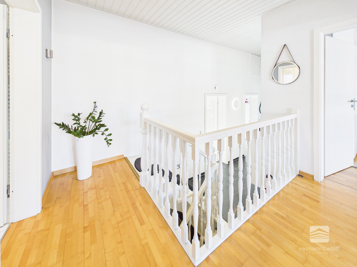 Die Empore öffnet den Blick in den Schlafbereich und schafft eine luftige, stilvolle Wohnatmosphäre.