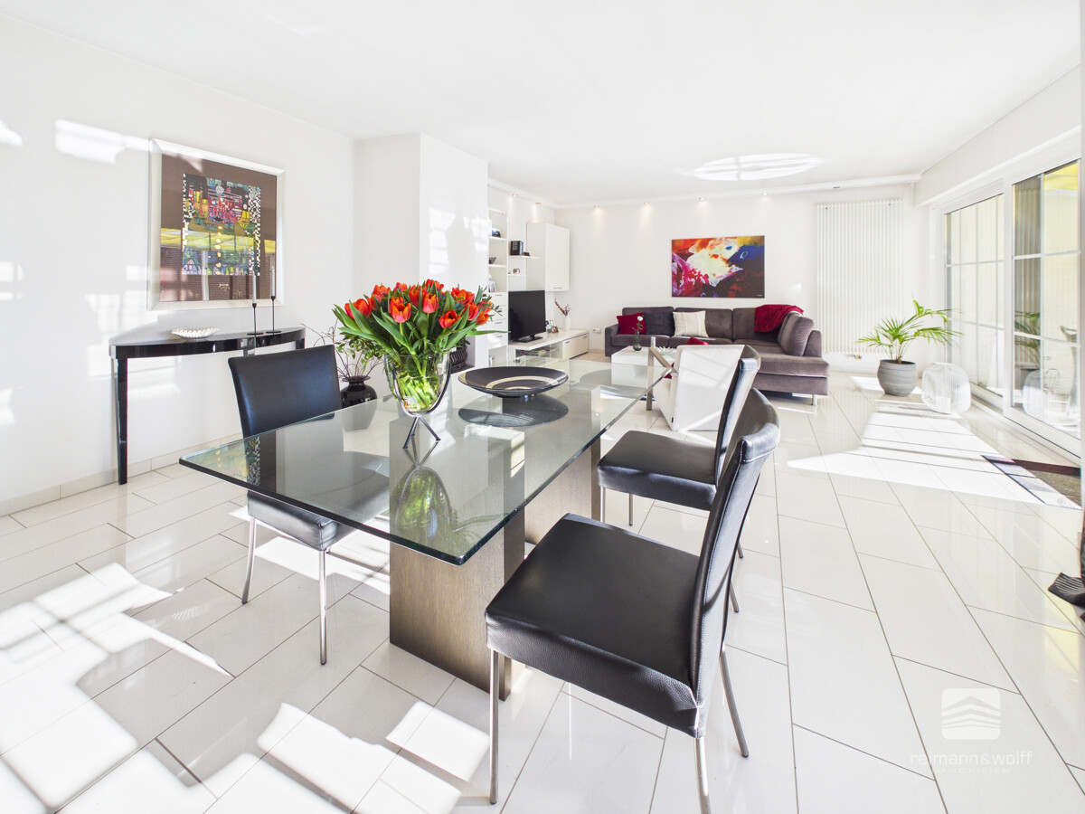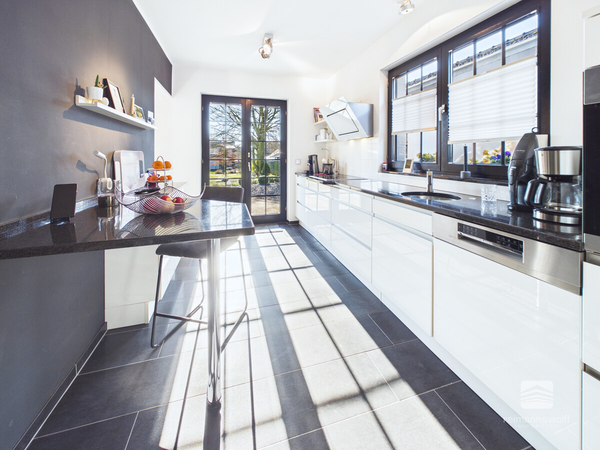 Auch im Inneren empfängt Sie eine helle und freundliche Atmosphäre. Großzügige Fensterflächen lassen das Tageslicht durch die Räume tanzen und verleihen dem eleganten Wohn- und Essbereich eine besonders einladende Ausstrahlung.