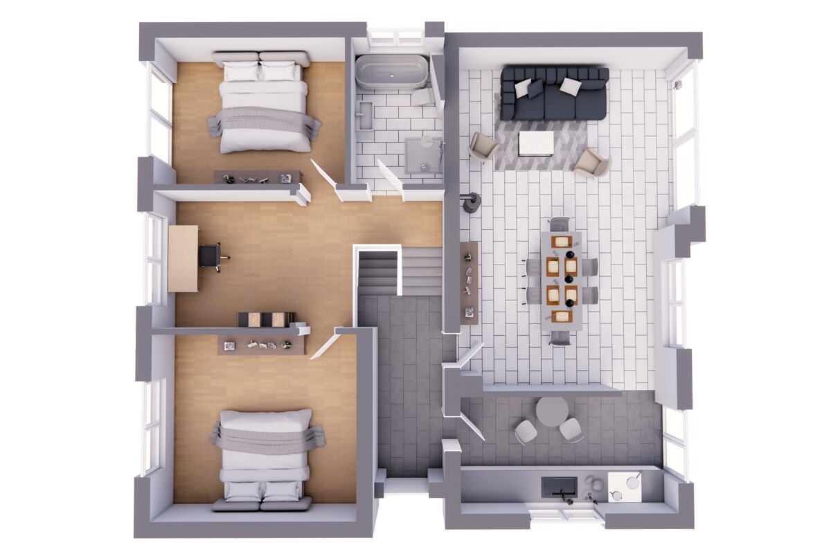 5. Zur besseren Veranschaulichung wurden einzelne Fotos digital bearbeitet. Möblierungen und Dekorationen sind teilweise virtuell ergänzt und dienen ausschließlich der Illustration. Der tatsächliche Zustand der Immobilie kann hiervon abweichen.